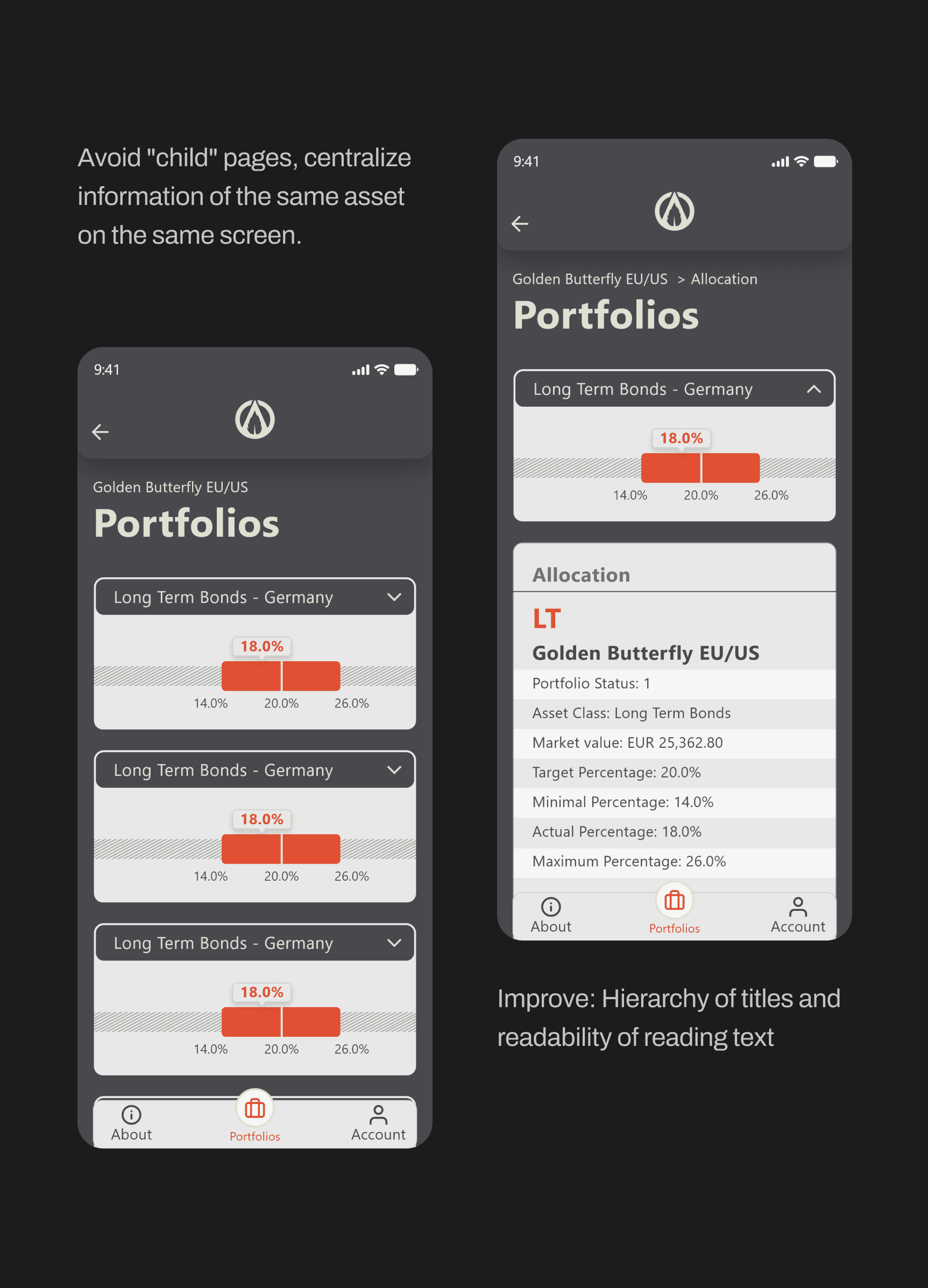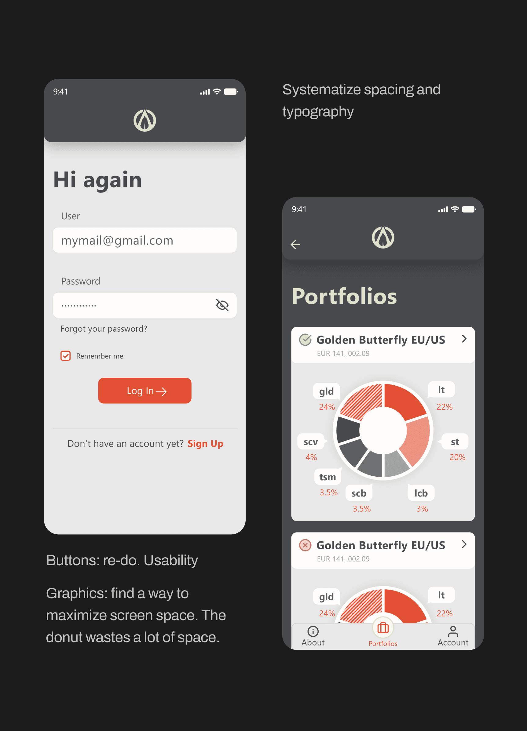 We decided to iterate the typography used to improve legibility, the color palette was further developed and finally, we defined other types of graphics that would not take up so much space.