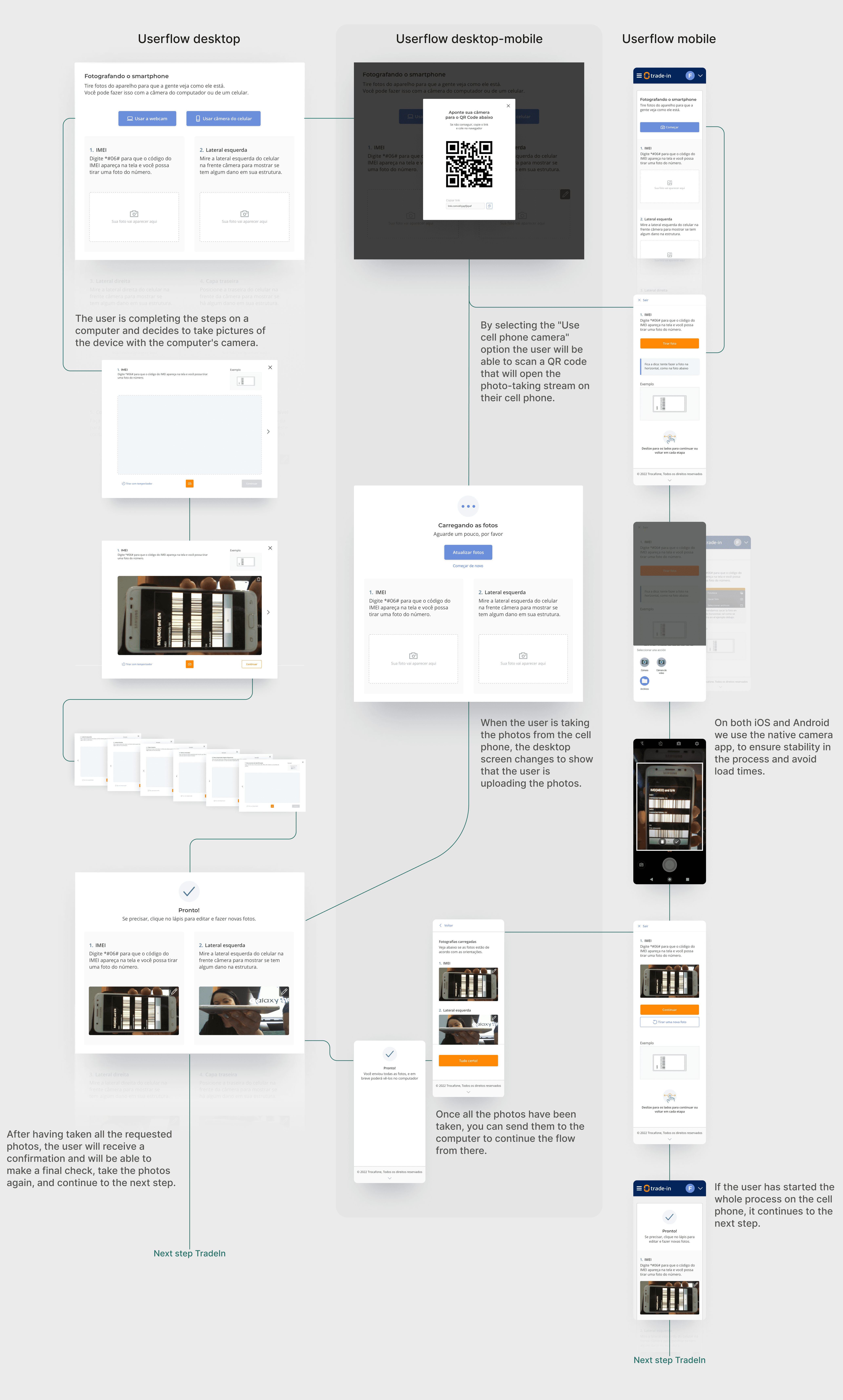 In the interviews, most users explained that the computers they use at work do not have a camera. Therefore, many of them started the Tradein workflow on their desktop, but when they got to the Photoshoot step they had to restart the workflow on their mobile.