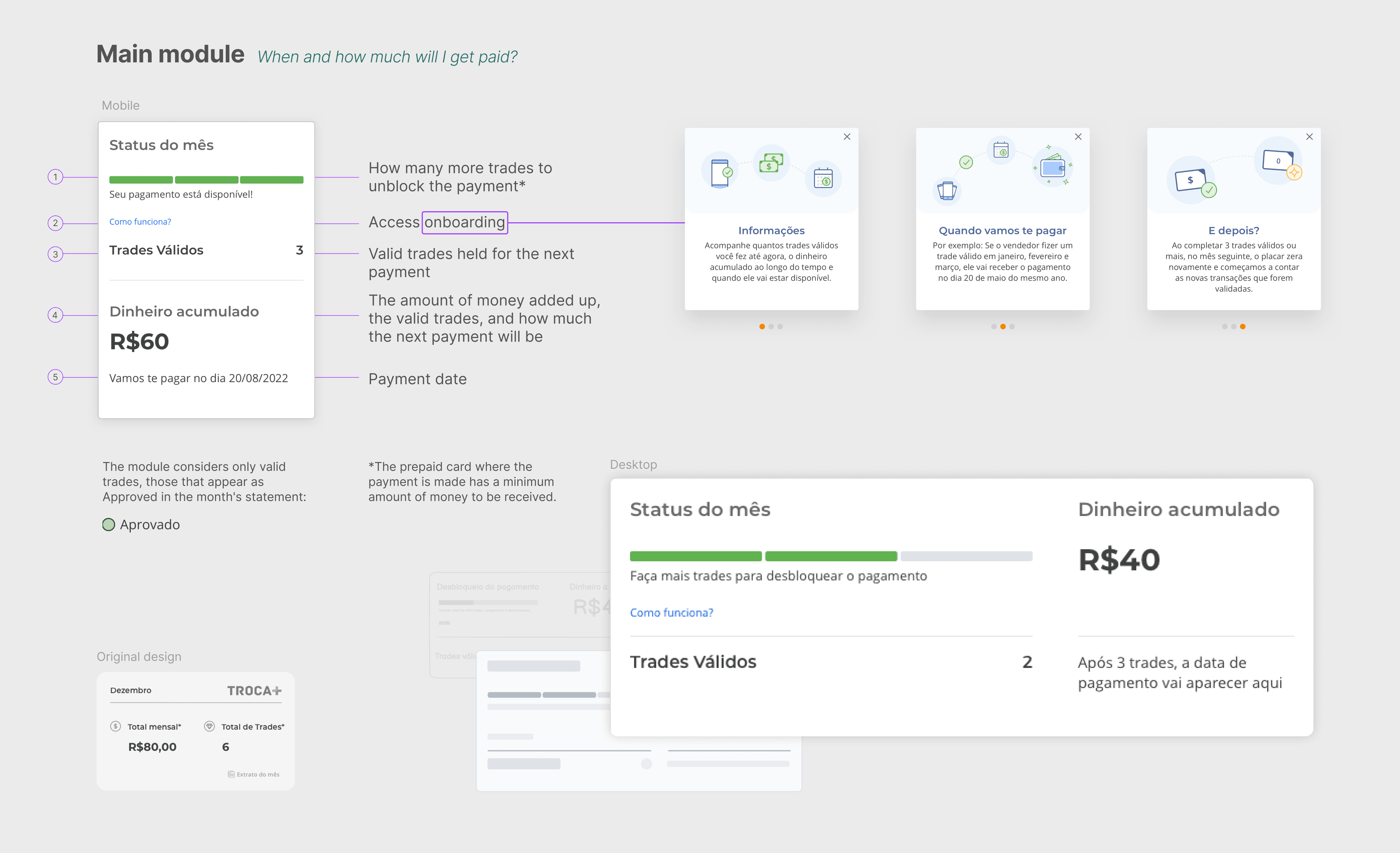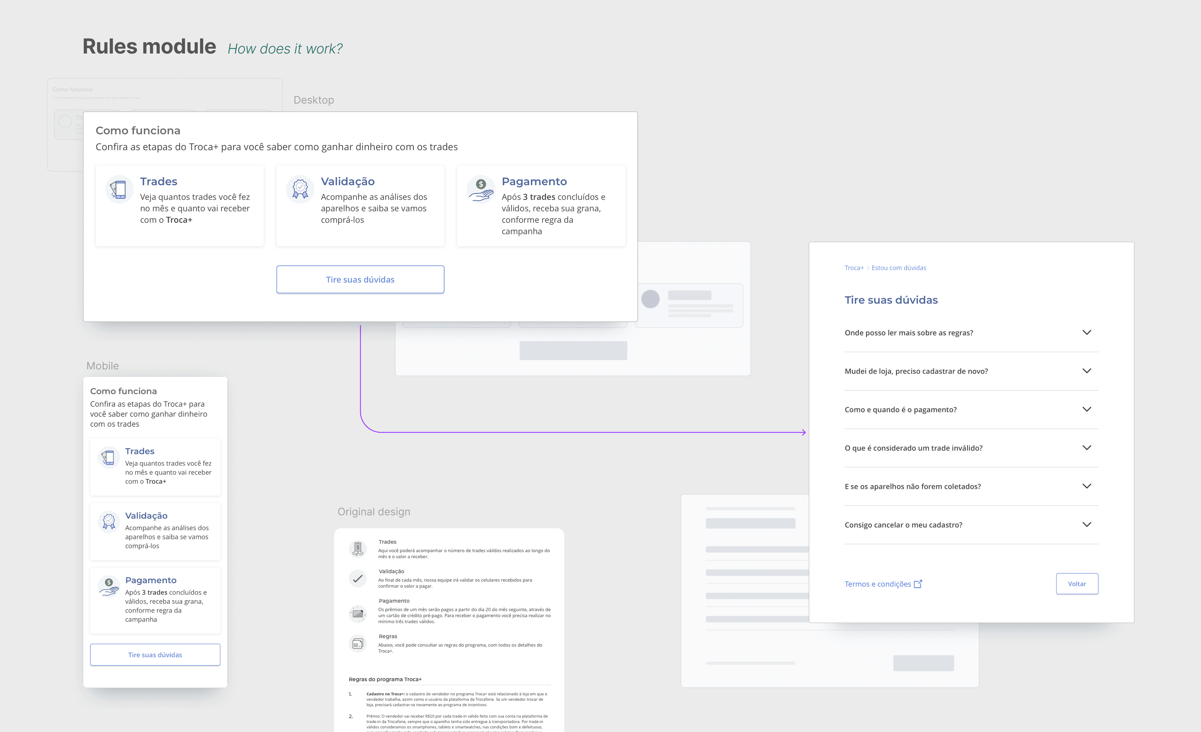 In order to speed up the delivery to development, we decided to think of the Troca+ program home page in a modular way. Each module would have a function and we would focus on prioritizing it in a clear way.